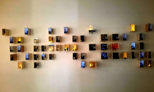 Talloze doosjes met kleine inkijkjes in kamers, in elke kamer een aspect van het leven in vluchtelingencentra. Fysieke aspecten, zoals blauwe matrassen, maar ook emotionele aspecten, bijvoorbeeld het gebrek aan privacy. Ruimtelijk ontwerper Nasma Al-Shutfa vluchtte vanuit Jemen naar Nederland, maar eenmaal aangekomen belandde zij in een traject dat minstens zo zwaar was als de route hiernaartoe. In de installatie I am Grateful (?) (2024) geeft ze een indrukwekkend inkijkje in het wachten, het papierwerk, het geduld en het doorzetten.